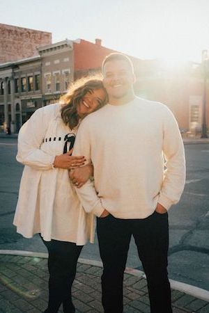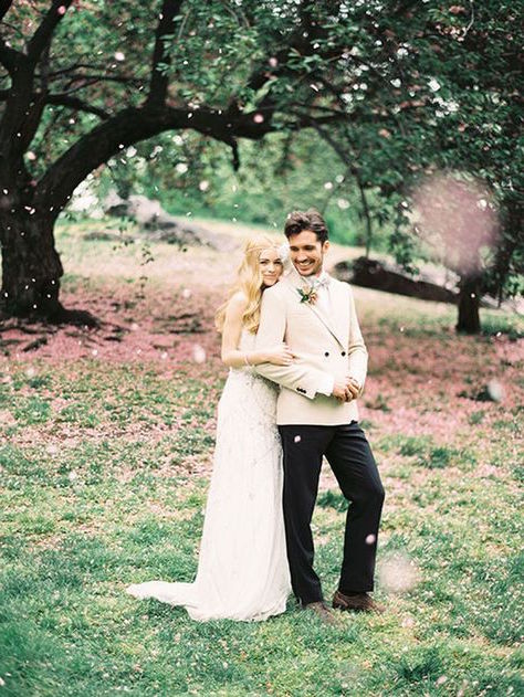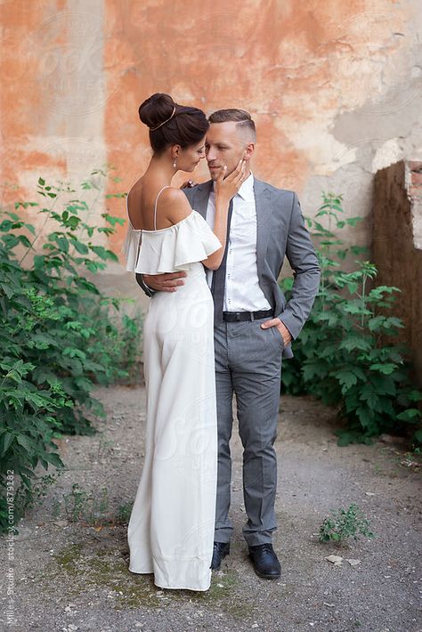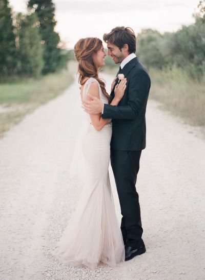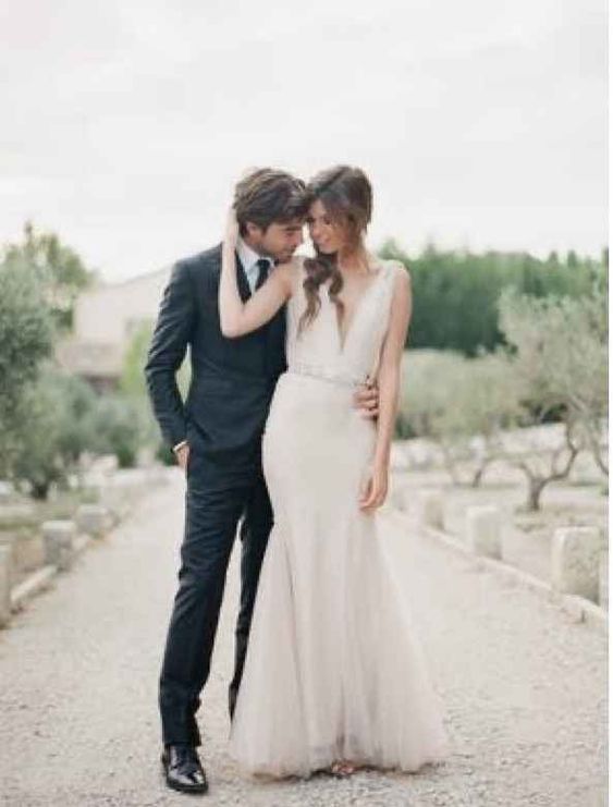 bride, put your right hand on his chest, your left around his waist, and lean into his right shoulder. groom, hands in your pockets, thumbs tucked in, and lean back into her a little.