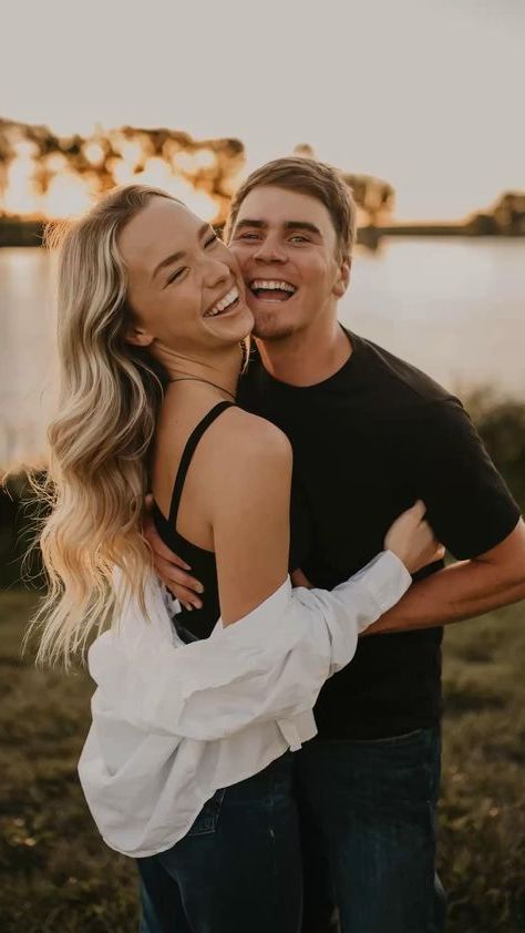 stand facing each other. bride, put your hands on his chest. groom, put your arms around her. bride, turn your shoulder towards me a little. groom, lean in and whisper in her ear.