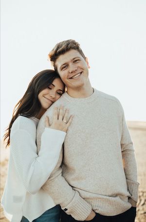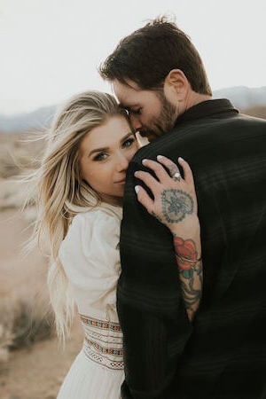 bride, put your right hand on his chest, your left on his right shoulder, and lean in to that hand. groom, let your left hand hang loose, put your right hand over hers.