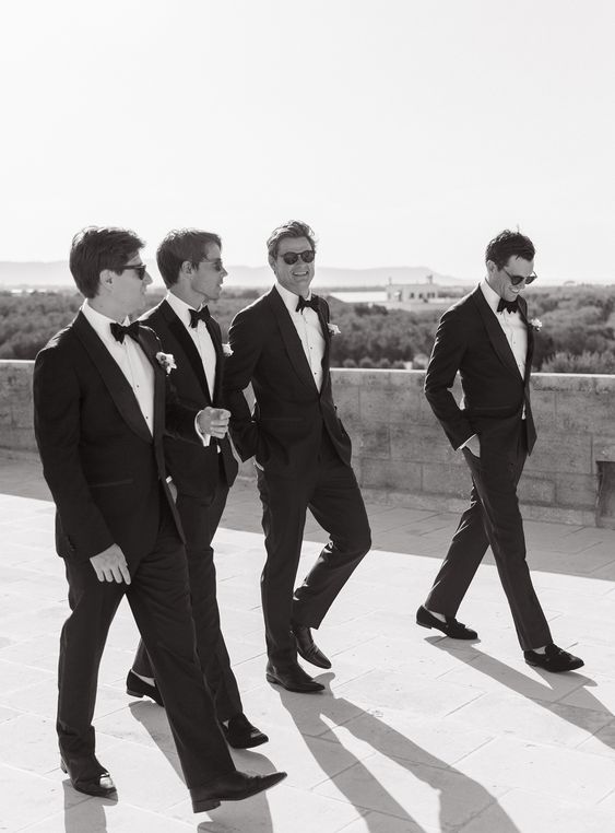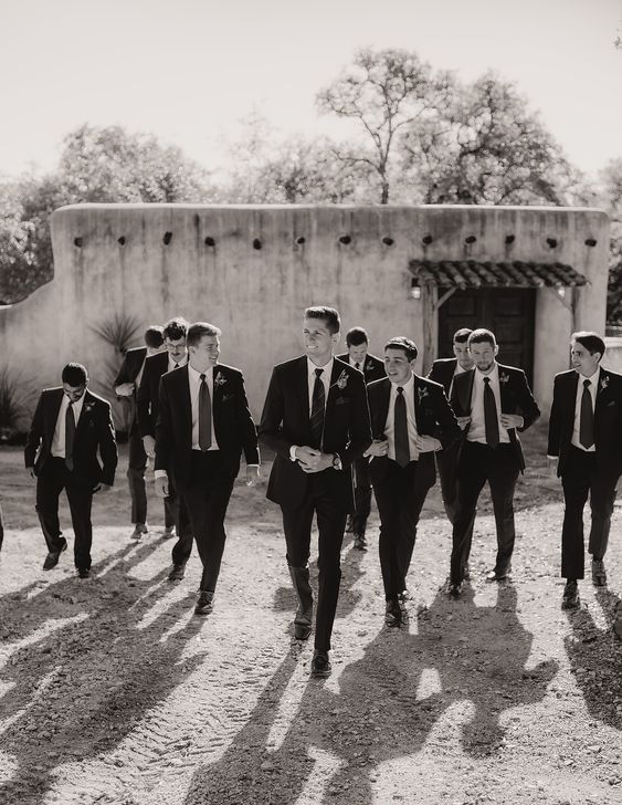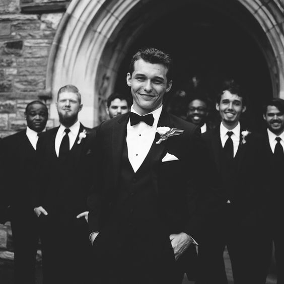 I'm going to count to 5. groom, on three, I want you to start walking towards me, looking off in the distance, messing with your watch. everyone else, wait until 5, then start walking towards me as well. you can mess with your cuffs too, or you can do this with your jacket.>